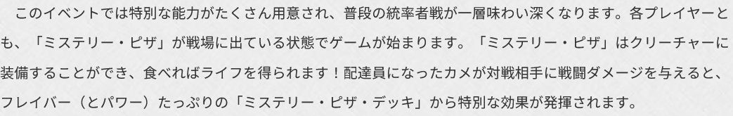 賞品 : ・Spicy Oatmeal Pizza(ピリ辛オートミールピザ) ボーダーレス版プロモカード